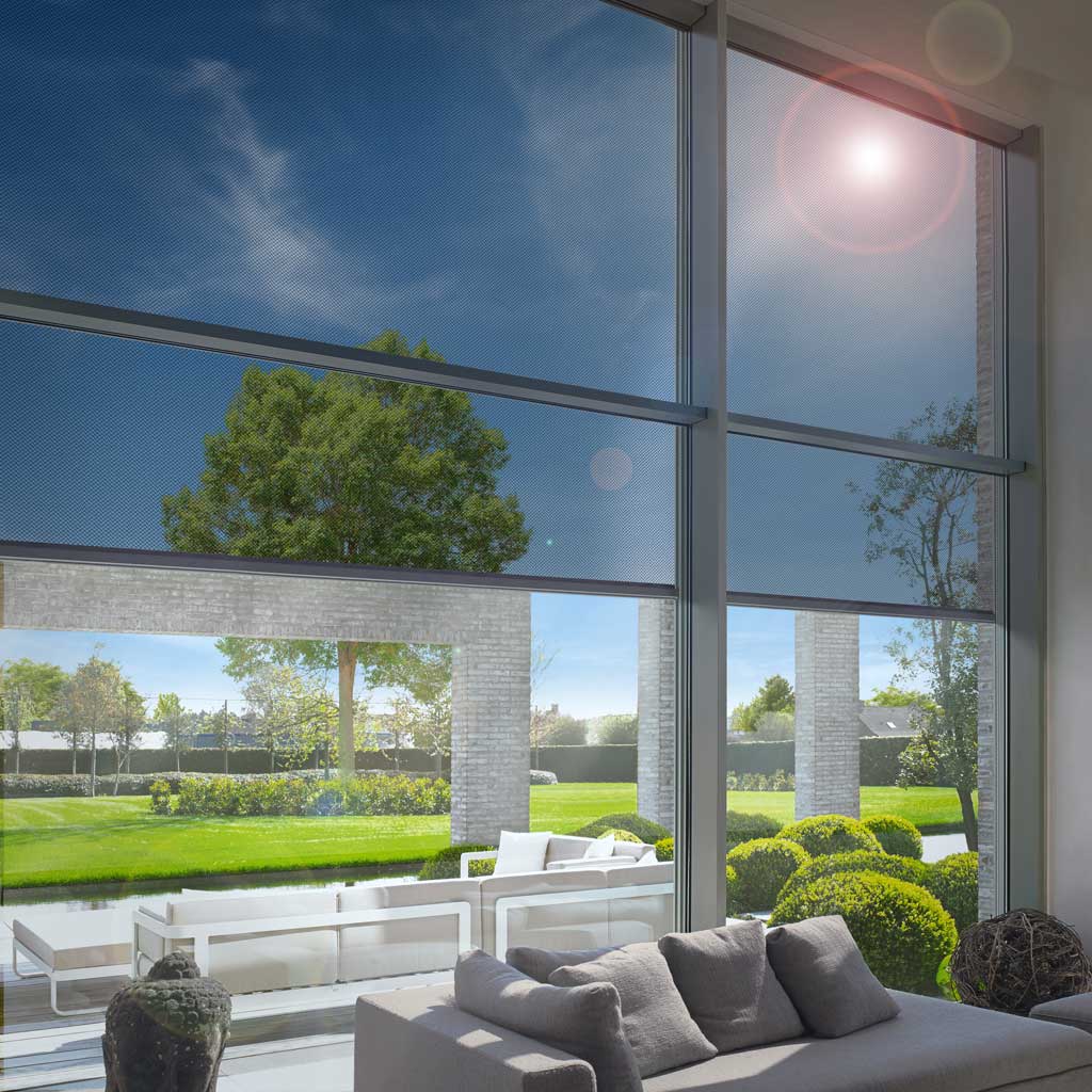 De zonnestralen warmen via het glas van je ramen je interieur op. En dan is het kwaad geschied, want de warmte die binnen zit, kan in een goed geïsoleerde en luchtdicht gebouwde woning maar moeilijk opnieuw naar buiten. Het is dus beter de zonnestralen tegen te houden nog voor ze de ramen bereiken. Buitenzonwering van Renson zorgt ervoor dat het binnen niet opwarmt. Want voorkomen is altijd beter dan genezen. Rolluiken werken toch net zo? Klopt, maar dan zit je op mooie zomerdagen wel in een donker huis’.