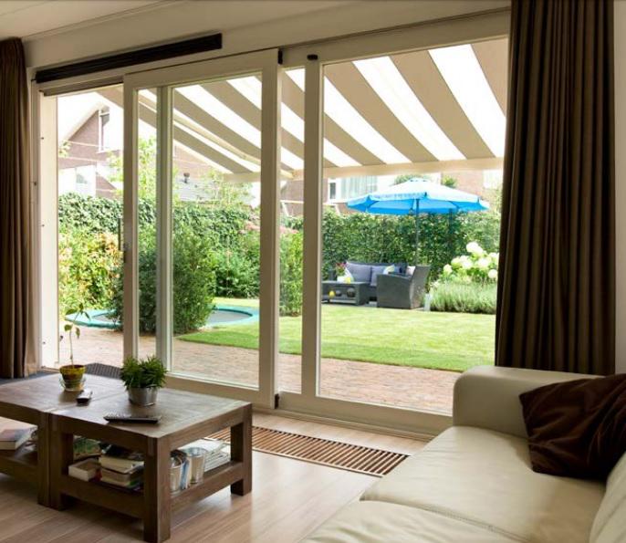Een zonnescherm gaat gemakkelijk 10 jaar mee. Maar na een tijdje wordt het doek wat valer en verliest het zijn kleur.