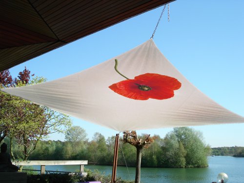 Schaduwdoek BLOEM trekt alle aandacht en fleurt het terras op met haar prachtige rode kleuren. Vooral als de zon schijnt zijn de kleuren intens mooi. De lenteliefde straalt er van af.