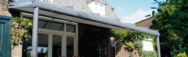 Een beetje uitval- of knikarmscherm overkapt al gauw het hele terras. Ruimte genoeg om er gezellig met vrienden en/of familie onder te zitten. Vaak is een terras aan een kant al afgezet met een schutting of een muurtje. Zet je aan de andere zijde zelf een windscherm van een paar coniferen in potten heb je, zodra je het zonnescherm laat zakken, meteen een fijn beschut terras. Met name op koudere zomeravonden kan je neerslag van dauw ondervinden en als het scherm veel naar beneden is loop je ook meer kans op vlekken van vogeluitwerpselen. Wil je de zonwering dus tevens half-om-half als terrasoverkapping gebruiken raden we je aan voor een goede kwaliteit doek te kiezen.