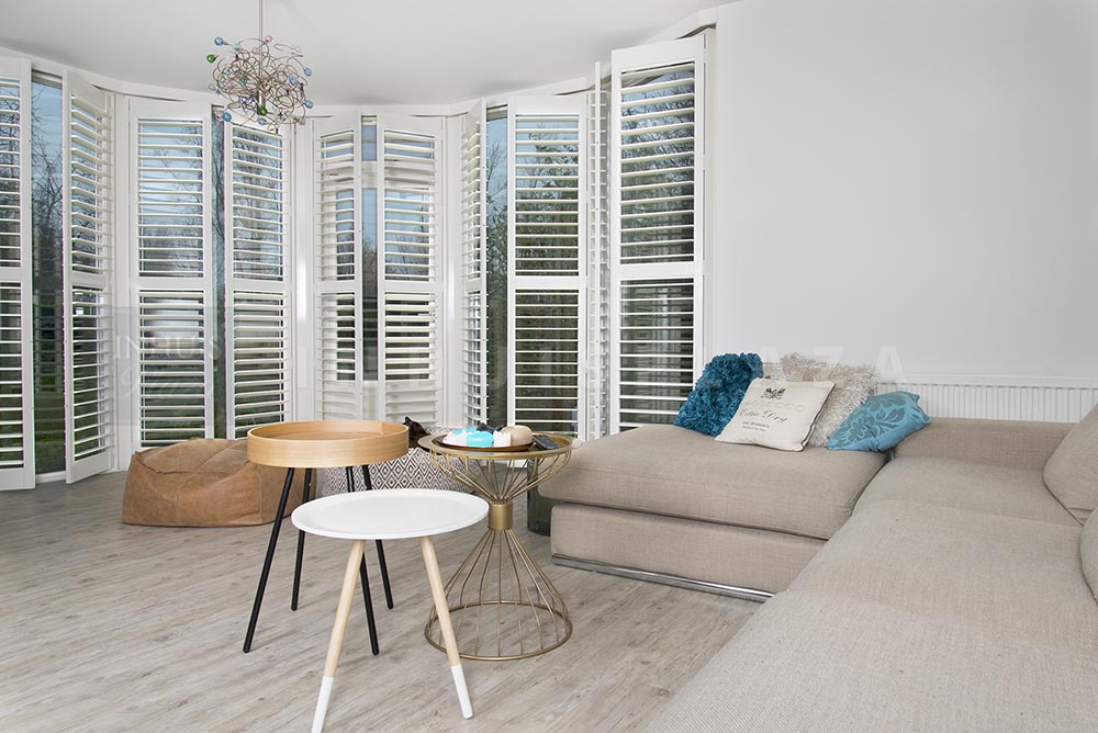 Op dit moment zijn shutters erg populair als raamdecoratie. De shutters van INHUIS Plaza worden aangeboden van Blend Window Fashion. De shutters zijn van hoge kwaliteit en bieden veel verborgen technische voordelen, zoals geïntegreerde magneten, kwartiersgezaagde lamellen en een pen en gat verbinding. Bij Inhuis Plaza kiest u voor basswood shutters (ook wel lindehout genoemd) of ashwood shutters. Bovendien kunnen shutters ook worden geleverd met een vouwrailsysteem. De shutters zijn leverbaar in de lamelbreedtes 63mm, 89mm en 114mm, afhankelijk van het type shutters.