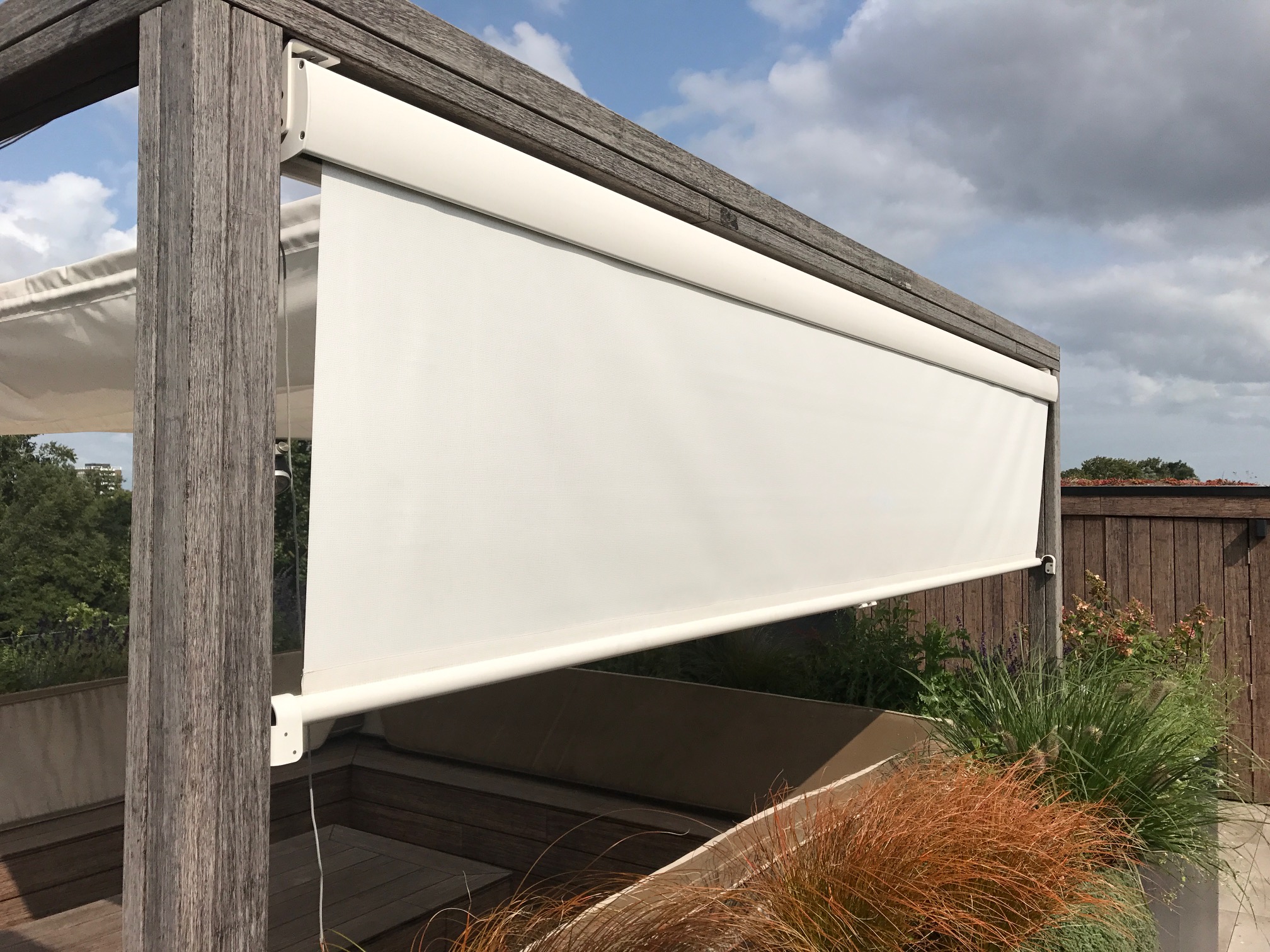 Met de oprolbare windschermen geef je jouw terras of tuin direct een luxere uitstraling. Het windscherm wordt in een cassette bevestigd die zowel horizontaal als verticaal geïnstalleerd kan worden.