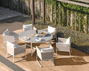 TEAK IS BACK: VIKING LOUNGE CHAIR Lounge chair VIKING is hèt bewijs dat ‘industrial design’ zeker ook een warme uitstraling kan hebben. Exclusief voor Borek ontwerpt Bouwmeester van Rens deze smaakvol vormgegeven en uiterst robuuste fauteuil, uitgevoerd in verantwoord teakhout. De fraaie houtsoort beleeft momenteel een ware comeback. Teakhout heeft immers niet alleen een warme uitstraling, maar is ook bestand tegen weer en wind. Dikke kussens (all weather) in de kleuren caillou cocoa en sooty, geven het luxe gevoel van heerlijk achterover ploffen in de VIKING lounge chair van Bouwmeester van Rens voor Borek.