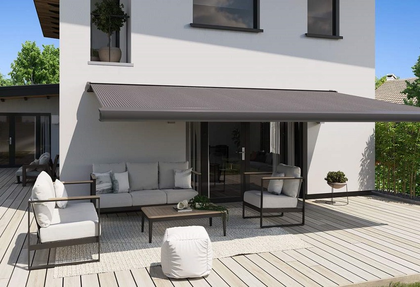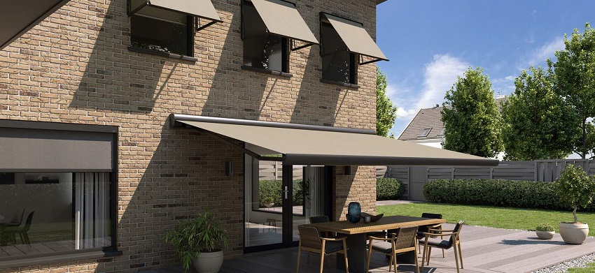 De geheel gesloten kast beschermt het doek in gesloten staat uitstekend tegen weersinvloeden en vervuiling. De draagarmen vallen weg in de kast, zodat zij een strak geheel vormen. Het frame kan gemoffeld of blank geanodiseerd worden. Deze bewerkingen dragen bij tot een lange levensduur. Een gemoffeld frame is standaard leverbaar in de kleuren roomwit en grijs.