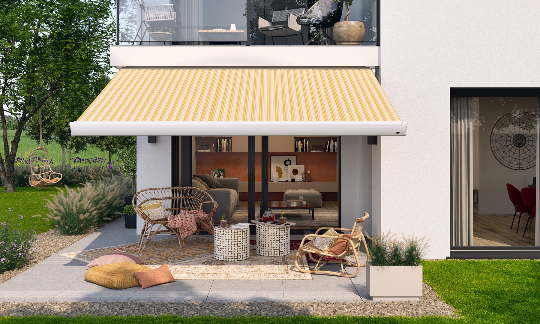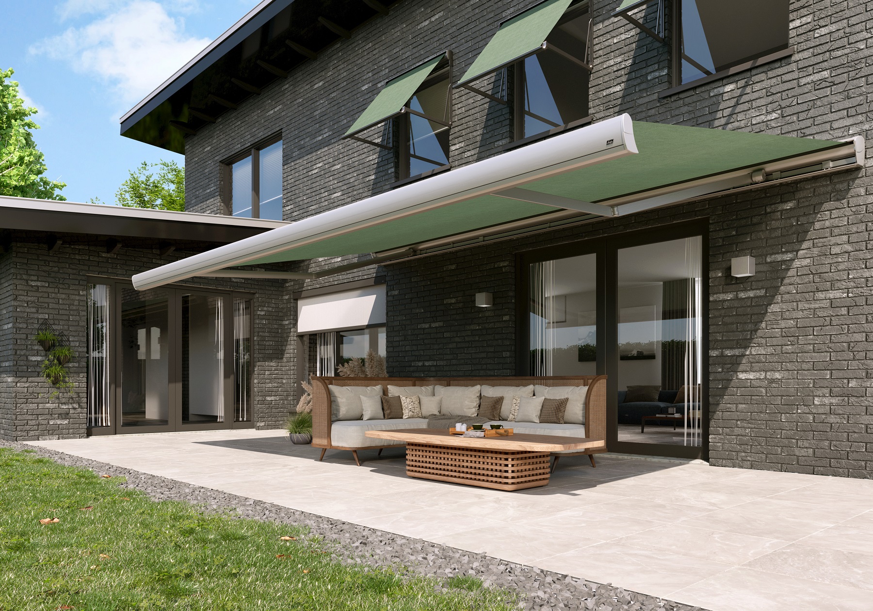 Cassetteknikarmschermen kunnen van 2,5m tot 12m breed geleverd worden. Afhankelijk van de breedte is een uitval tot 3,5m mogelijk. Dit is geschikt om menig terras mee te overkappen.