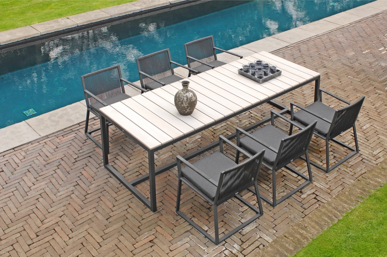 Teakhouten tuintafels in een eigentijdse uitvoering, zo laat de nieuwe collectie