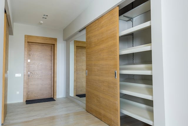 Als je een grote woonkamer hebt en een duidelijk onderscheid wil maken tussen een woon- en werkgedeelte kan het een idee zijn om de ruimte in tweeën te delen met een schuifdeursysteem. Schuifdeuren zijn er in alle soorten en maten, maar ze zijn bijna allemaal erg sfeervol. Je kunt gaan voor een schuifdeur met ramen, zodat de ruimte nog wel als een geheel voelt, of juist zonder ramen, om een echte tweedeling te maken in de woonkamer. Je kunt kiezen voor één schuifdeur die je open en dicht kan trekken. Er zijn verschillende manieren om een schuifdeur te bevestigen. Het meest populair is de hangende schuifdeur. Je kunt er ook voor kiezen om de schuifdeuren in de muur te laten verdwijnen. Dat ziet er ontzettend tof uit, maar is wel een flink tijdrovende en dure klus.