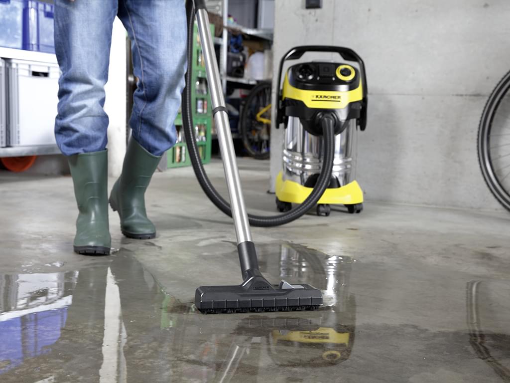 Tijdens de vochtige wintermaanden maken smerige autobanden de garage vuil. Plan je een grondige schoonmaak? Dan raden we aan om voor de garagevloer ongeveer 45 minuten uit te trekken. Begin met een multifunctionele alleszuiger om losliggend vuil te verwijderen. Vervolgens kan je hier de Powerscrubber PS 40 van Kärcher gebruiken in combinatie met een Kärcher hogedrukreiniger. De PS40 is uitgerust met een rubberen trekker om het water makkelijk weg te trekken. Je kan uiteraard ook kiezen om het water op te zuigen met behulp van een multifunctionele alleszuiger.
