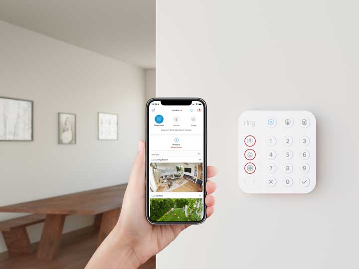 Ring Alarm is voor een volledig thuisbeveiligingssysteem te koppelen aan de al aanwezige videodeurbellen en beveiligingscamera’s van Ring. Als het alarm afgaat, activeert Ring Alarm automatisch alle Ring-camera’s, óók als ze geen beweging detecteren. Ring Alarm is ook compatibel met geselecteerde Alexa-apparaten, zodat je met je stem Ring Alarm kunt in- en uitschakelen en de status ervan kunt controleren.