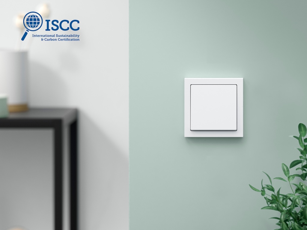 De witte afdekkingen van de future® linear-schakelaarserie zijn voortaan vervaardigd van ISCC-gecertificeerd biobased materiaal.