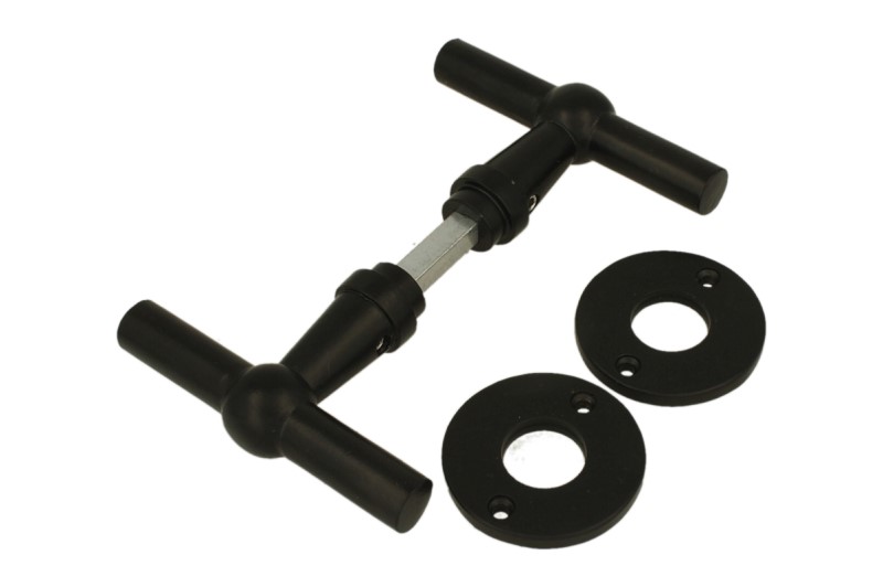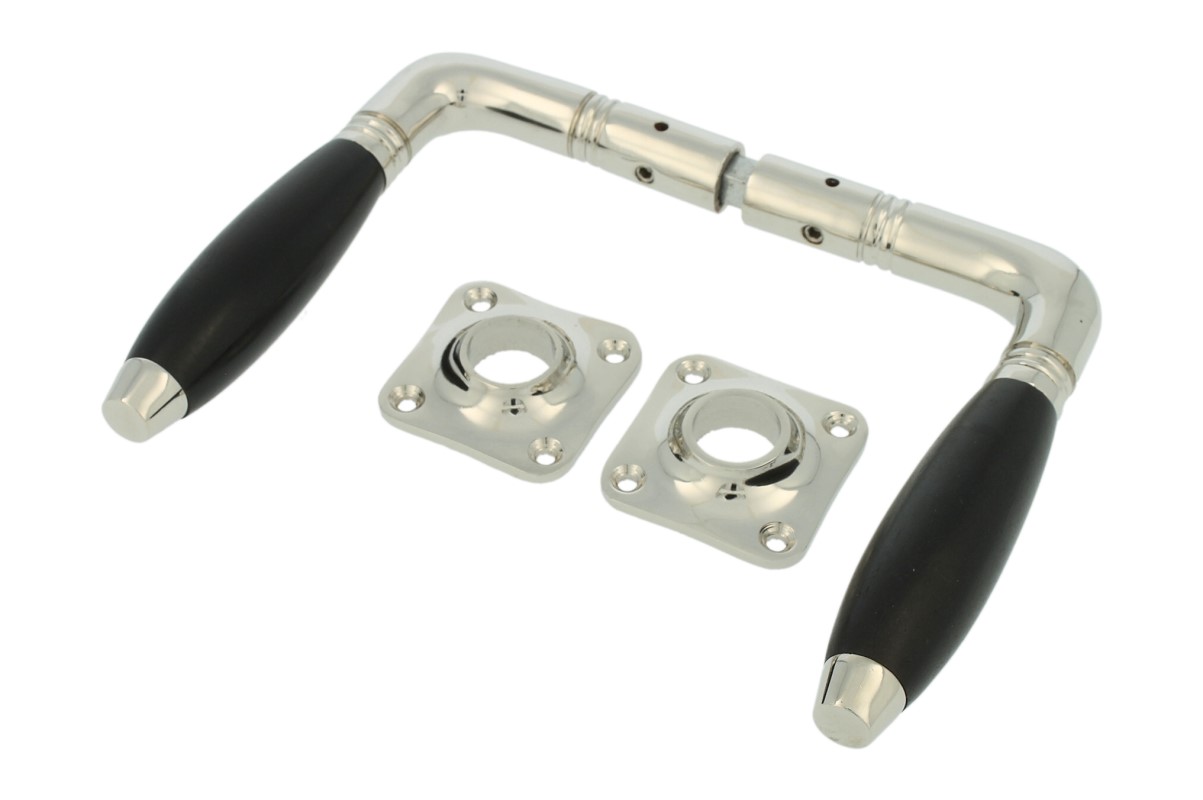 Tonmodel Jaren 30 deurkruk afgewerkt met ebbenhout €33,50 voor een complete set inclusief rozetten en bevestigingsmateriaal bij retro-deurbeslag.nl