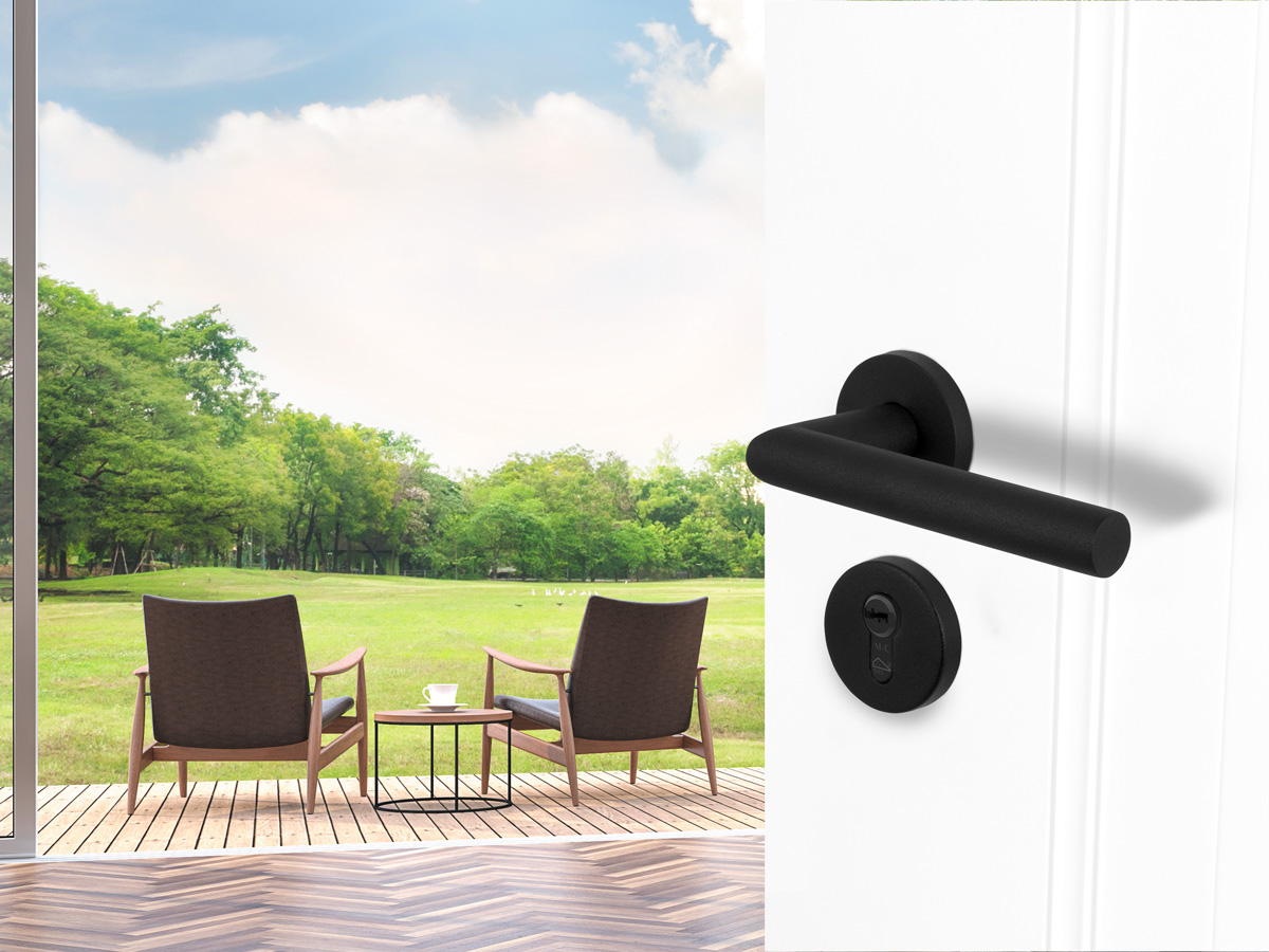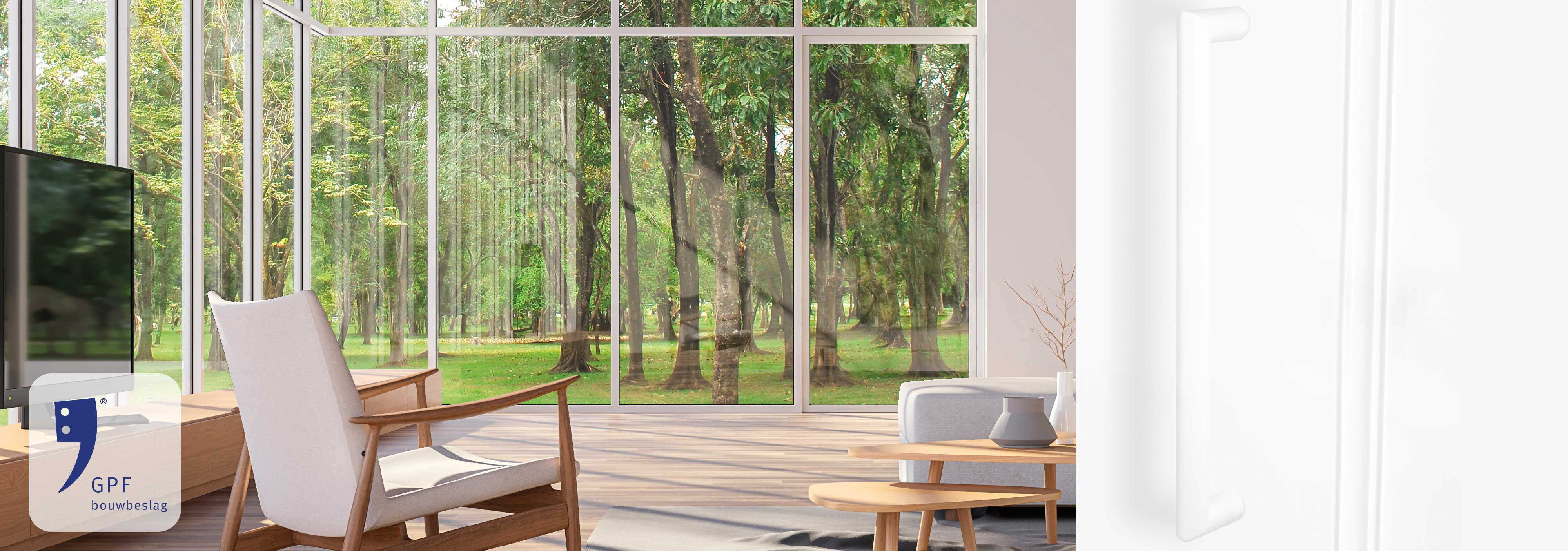 Compleet assortiment deurbeslag voor binnen- en buitendeuren: o.a. deurkrukken, veiligheidsbeslag, raambeslag, schuifdeurbeslag en meubelbeslag.