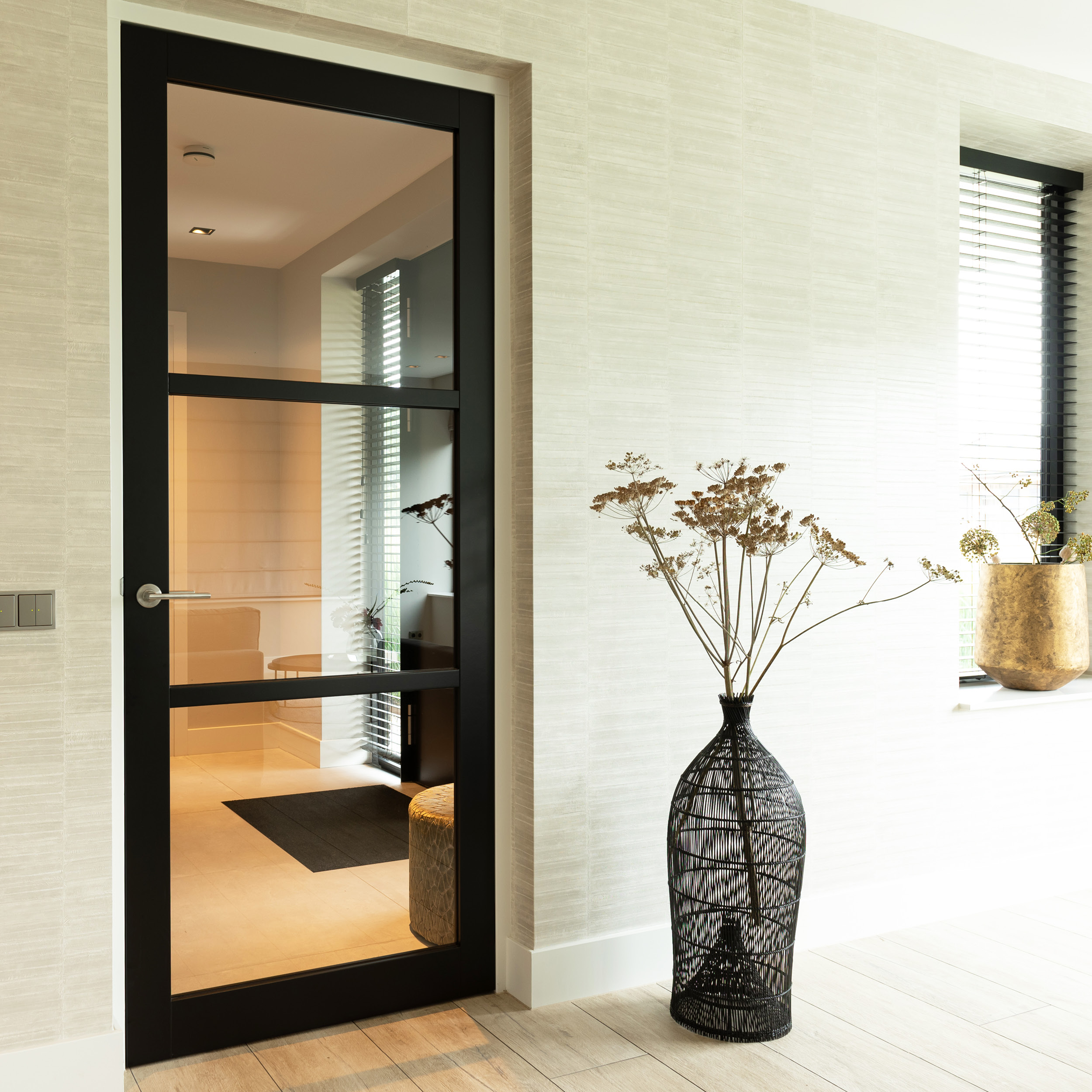 Binnendeuren met strakke lijnen van echt hout geven een industrieel gevoel