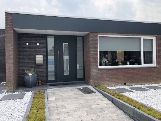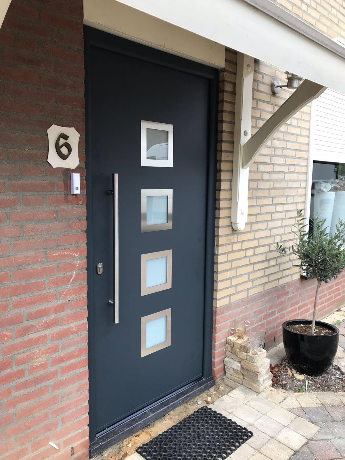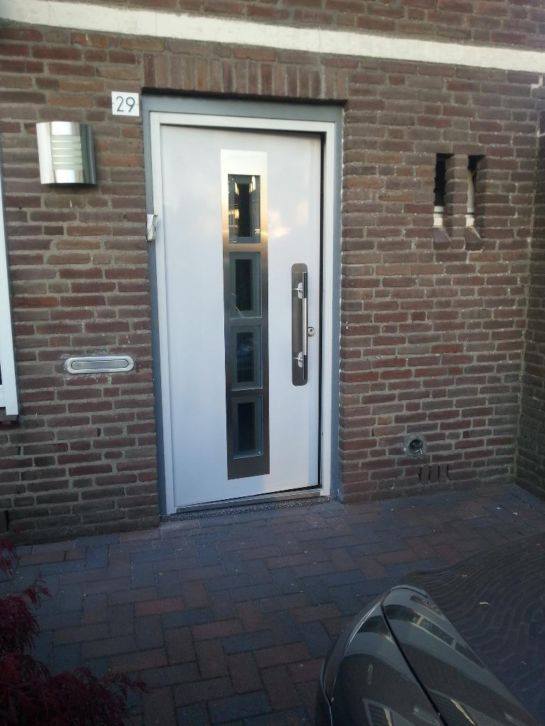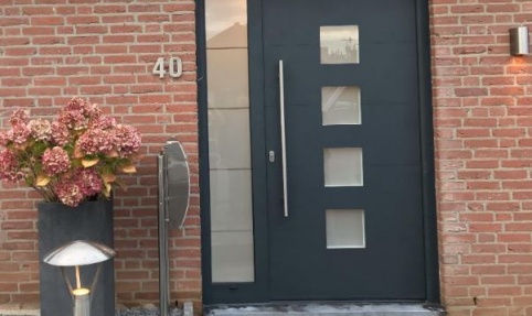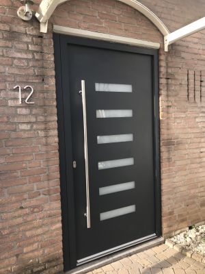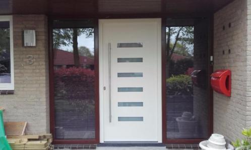 Tijdelijke maart actie met € 500.- voordeel. Nu van € 4.950.- voor € 4.450.- Onze Thermisch geïsoleerde en vleugeloverdekkende Aluminium voordeuren worden op maat gemaakt. Uitgevoerd met bijbehorend kozijn. Met gelaagde 4 dubbele beglazing dikte 70mm. Extreem lage Isolatiewaarde hebben onze aluminium deuren slechts U 0.8 - 0.98 Kw per m2, 3 Zware 3 d scharnieren 3 dimensionaal verstelbaar. automatische haken vergrendeling van WINKHAUS. Leverbaar in vele kleuren zonder meerprijs. Vele ca 100 klassieke en moderne modellen beschikbaar. Levertijd afhankelijk van model 6- 8 weken. Leveren van zijdelen en bovenlichten tegen meerprijs en uit een geheel gemaakt met de deur mogelijk. Montage tegen meerprijs mogelijk door onze eigen montage dienst.