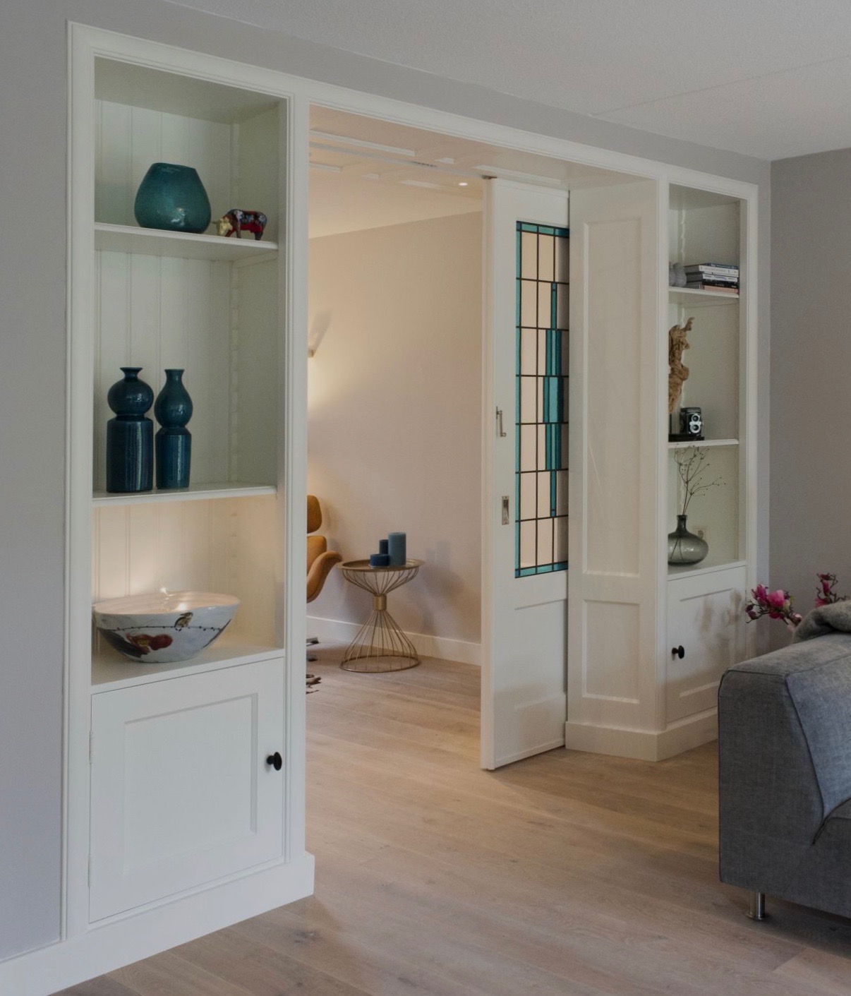 De schuifdeuren kunnen worden voorzien van glas-in-lood dat naar eigen wens kan worden ingericht met diverse kleuren, patronen en motieven. Naast schuifdeuren worden de kamer en suites ook veelal gescheiden door middel van tijdloze paneeldeuren. Deze paneeldeuren kunnen eveneens worden voorzien van glas-in-lood dat geheel naar eigen smaak kan worden ingericht. Het toevoegen van ofwel schuif of paneeldeuren zorgt voor het karakteristieke element van een kamer en suite. Bij MooieEnSuite.nl bent u bij de vakman met een passie voor kamer en suites en alles wat daar mee te maken heeft. Wij zijn gespecialiseerd in kamer en suites en nodigen u ook van harte uit om een keer een kijkje bij ons te nemen. Hier kunt u een goede sfeerimpressie krijgen die een kamer en suite met zich mee brengt.