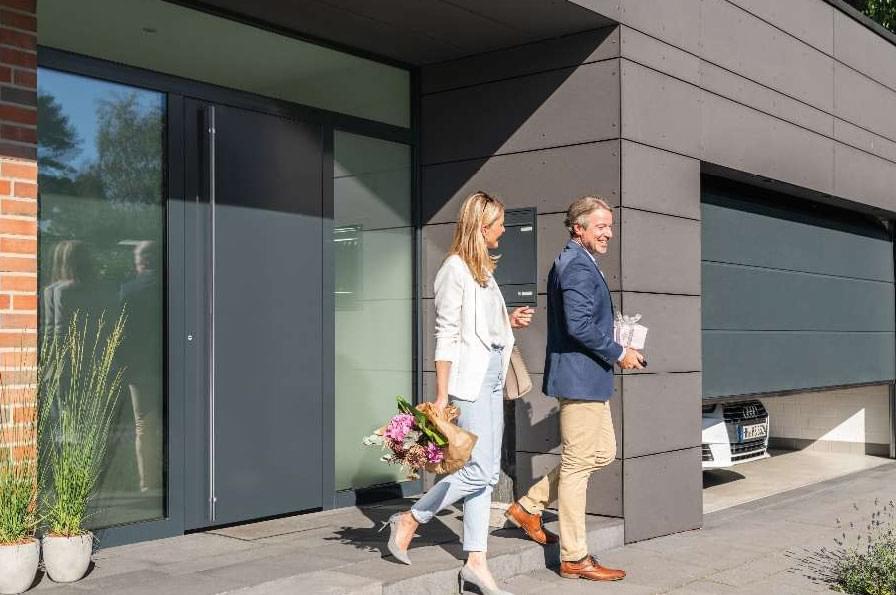 Juist bij een moderne architectuur past een royale entree, waarbij de voordeur elegant opgaat in het geheel. Niet alleen de kleur en het design, maar ook de verdekt liggende scharnieren en het feit dat de deur in hetzelfde vlak ligt zijn kwaliteitskenmerken waar aannemers en architecten waarde aan hechten. De ThermoPlan Hybrid-voordeur onderscheidt zich vooral doordat het deurblad zowel aan de buiten- als binnenkant in hetzelfde vlak ligt als het kozijn. Dit zorgt voor een bijzonder royaal en elegant effect. Verder kan er uit een groot aantal designs en kleuren worden gekozen.
