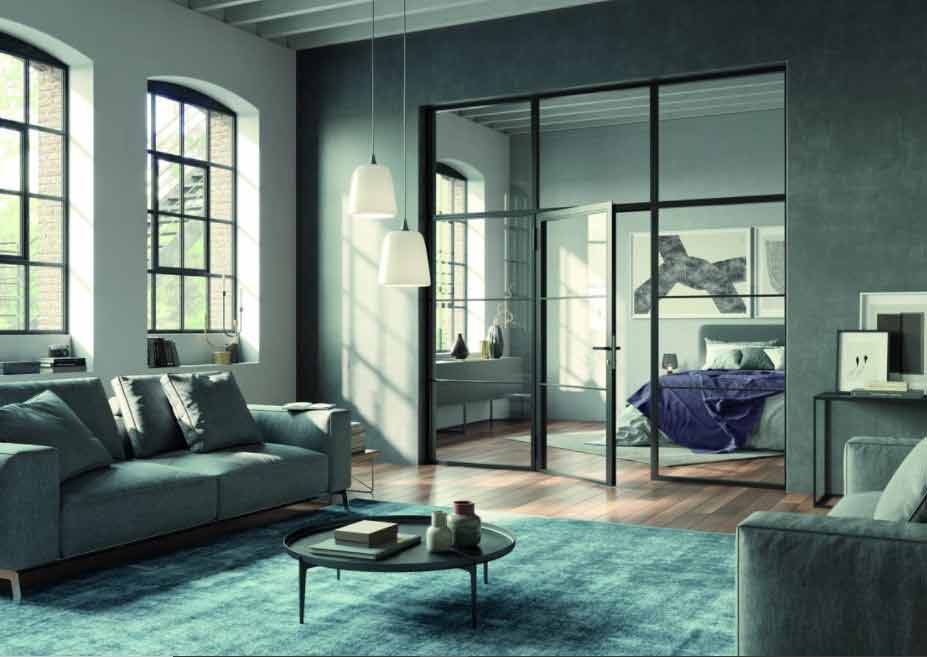 Een moderne, industriële look laat zich al een geruime tijd voelen in de interieurwereld en glas in combinatie met staal blijft domineren. Hörmann combineert glazen deuren met een stalen frame, opdat er maximaal lichtinval van de ene ruimte naar de andere kan binnenvallen. Het matzwarte ‘black.edition’beslag van Hörmann is eveneens verkrijgbaar voor deze stalen deuren. Ook in deze stijl bestaan er een heleboel varianten, zoals draai- en schuifdeuren. Het glasgedeelte is er in blank of helderwit glas. Voor een industriële look geeft men de keuze uit twee deurontwerpen, namelijk het Loft ontwerp 1-5 met vijf panelen of het Loft ontwerp 2-5 met een totaal van tien panelen.