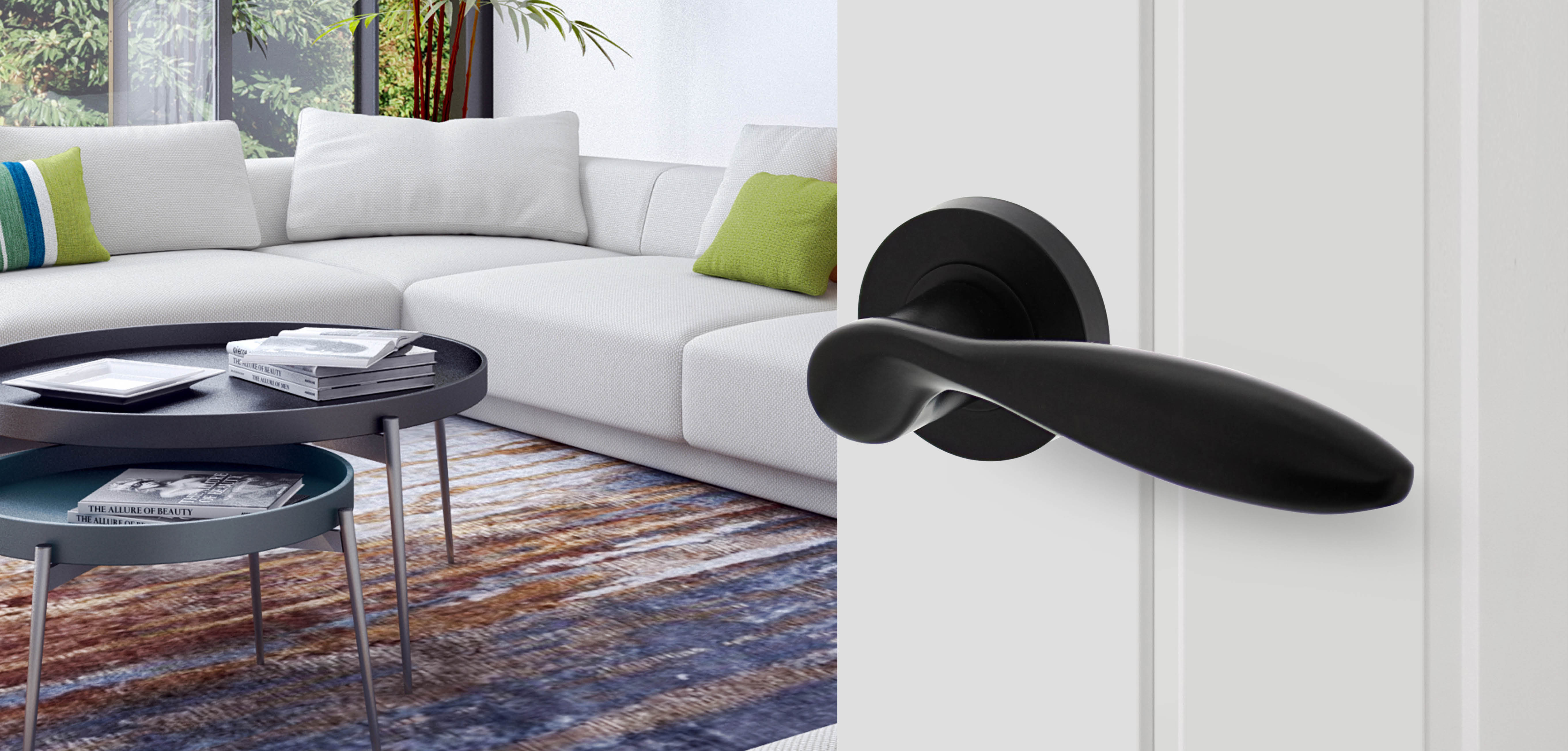 De Living Black collectie is een van de breedste series van Intersteel. Naast binnen-, buiten- en raambeslag biedt de collectie ook meubelgrepen en accessoires als deurstoppers en leuninghouders. Met de uitbreiding van het assortiment loopt het zwarte beslag als rode draad door het interieur. Van de voordeur via de gang naar de andere woonvertrekken; voor iedere ruimte zijn er matzwarte accessoires beschikbaar. Denk hierbij aan veiligheidsbeslag, deurknoppen, wc-rozetten en de eerder genoemde deurstoppers en leuninghouders. Door de zwarte ‘kleur’ ontstaat er een uniformiteit die rust en cachet uitstraalt.