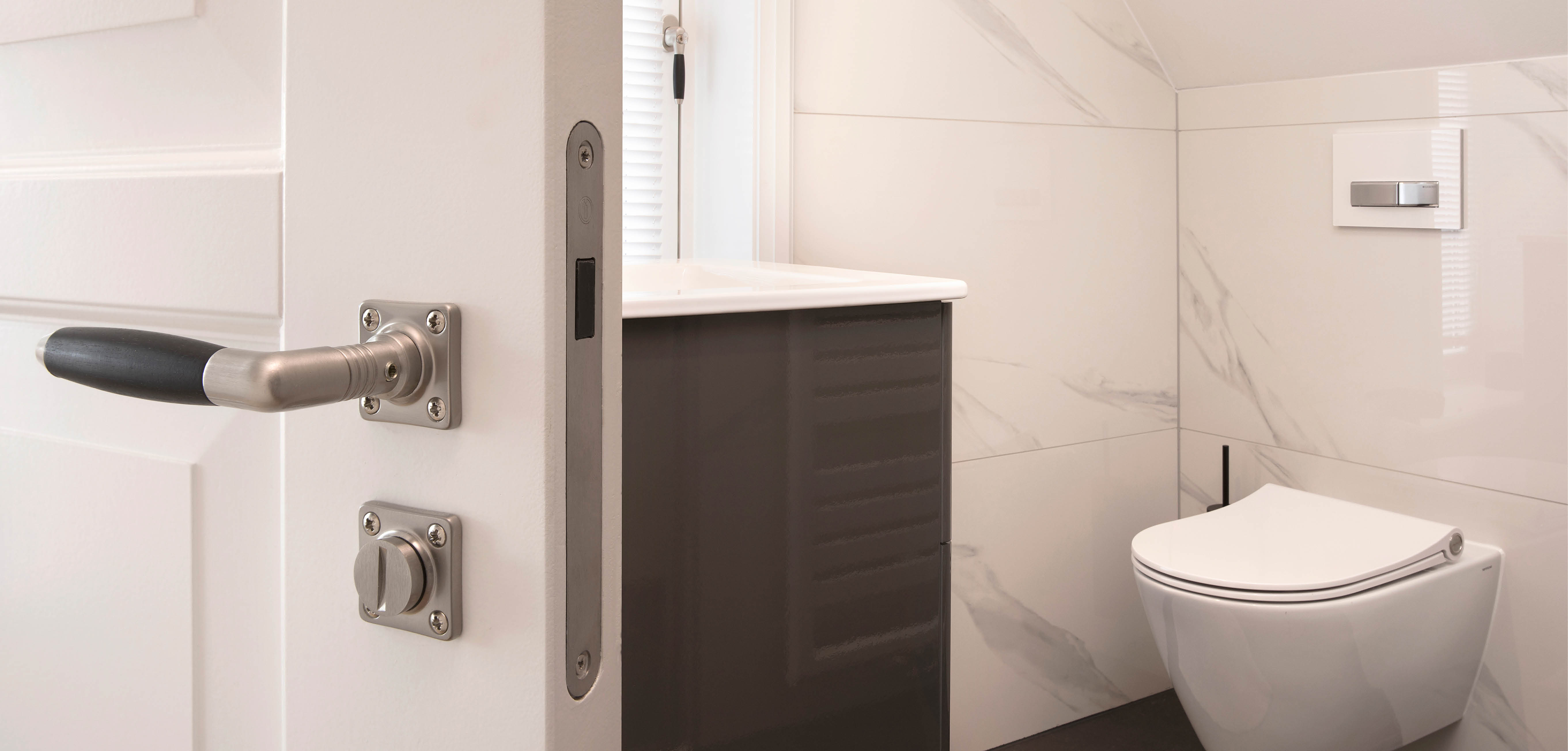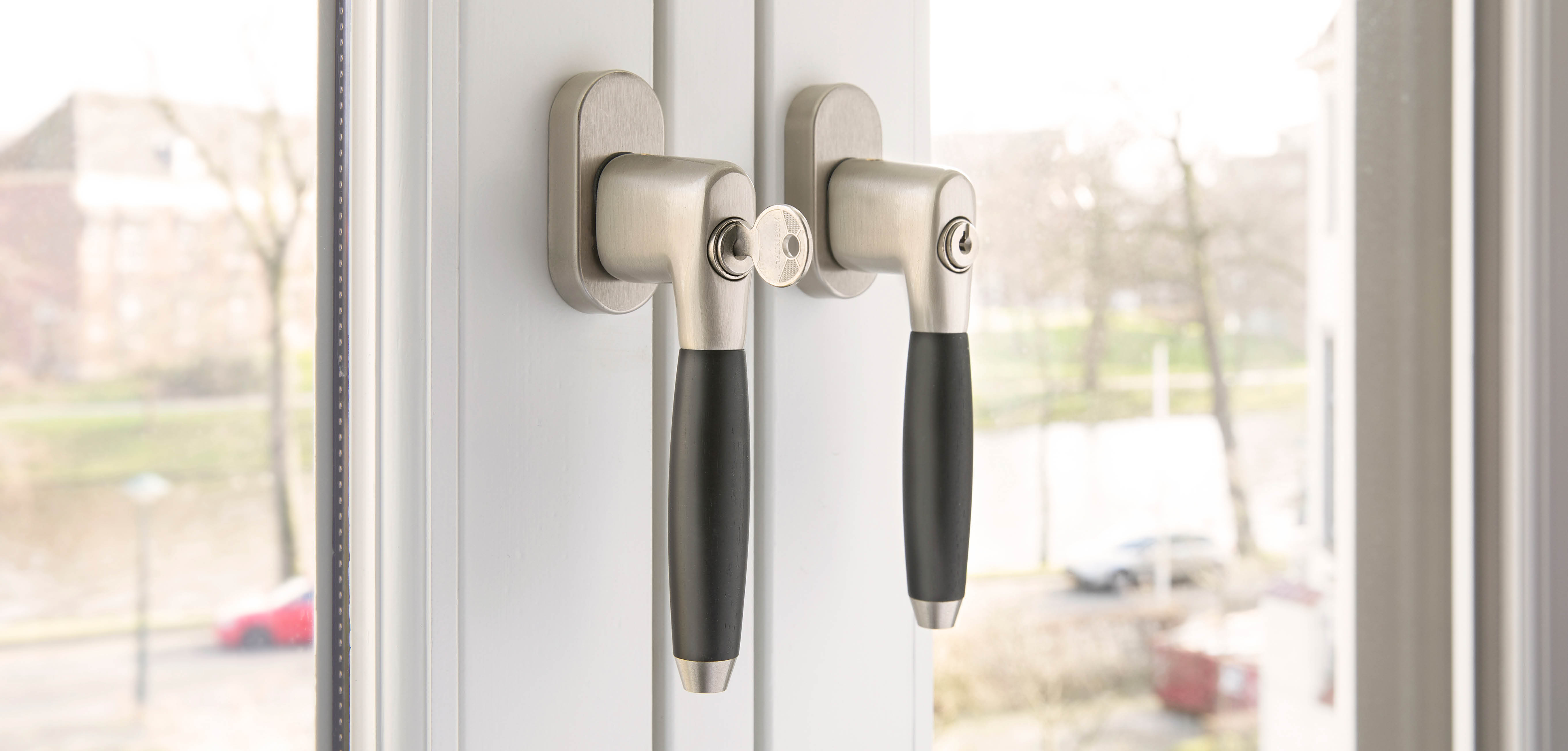 Omdat de finishing touch vaak in de details zit, is er ook goed gekeken naar zaken als binnen- en buitendeuren, vensters en kozijndetails. Sigrid Medema van Medema Interieurontwerp in Leeuwarden overlegde met Maarten ter Horst, projectadviseur van Intersteel over de keuzes die gemaakt moesten worden. Voor de buitendeuren is gekozen voor het stijlvolle model Jupiter deurbeslag in mat zwart, compleet met veiligheidsrozetten. Dit is gecombineerd met zwarte kogellagerscharnieren. Belangrijk is dat deurbeslag en scharnieren zijn voorzien van het SKG***® keurmerk en daarmee voldoen aan de hoogste eisen van het Politiekeurmerk Veilig Wonen.