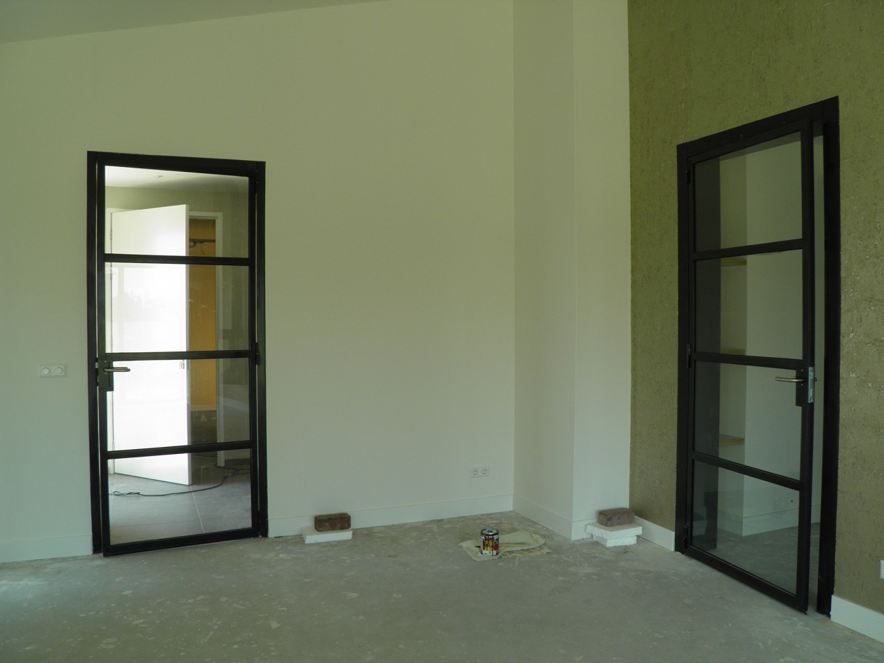 Strakke stalen binnendeuren met glas zorgen voor een stoere en industriële look. Geheel naar wens en voor u op maat ontworpen bij Verbruggen Sierhekwerken.