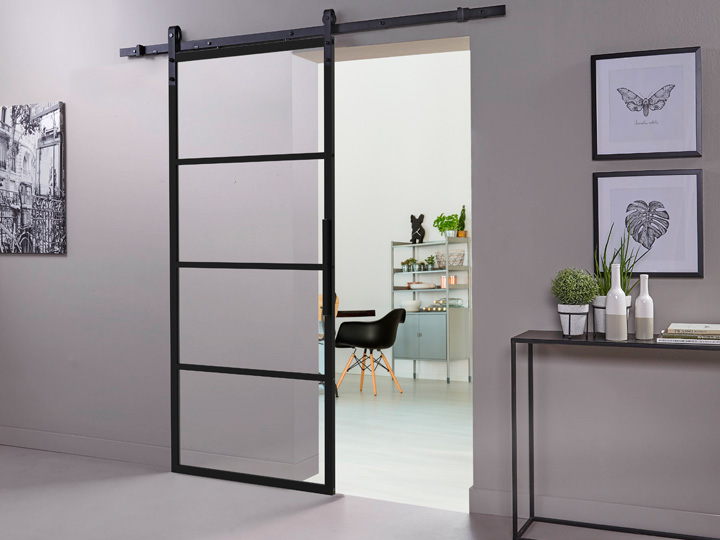 De DIY-schuifdeur Cubo past in elk interieur en kan worden gebruikt op allerlei plaatsen. Hij sluit een ruimte stijlvol af, maar neemt zelf weinig ruimte in. De schuifdeur kan bijvoorbeeld geplaatst worden tussen de hal en de woonkamer, als scheiding tussen woon- en eetkamer of ter afscheiding van een inloopkast of walk-in closet. Uitgevoerd met zwart aluminium profielen heeft de schuifdeur een strakke, industriële uitstraling. En omdat de DIY-schuifdeur Cubo is voorzien van glas - naar keuze transparant of mat - valt het licht er doorheen, wat de ruimte een open sfeer geeft.