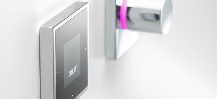 Digitalisering van de badkamer met de Dornbracht Smart Water digitale bedieningsknoppen.