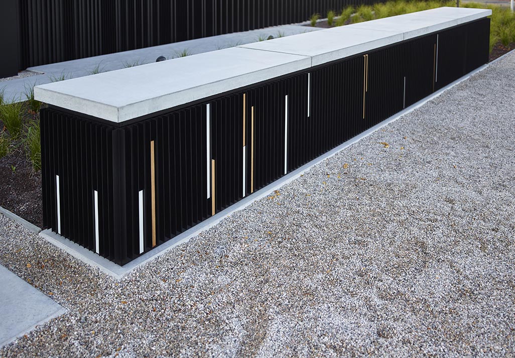 Tuinmuurtje, zitbank of bloembak in dezelfde stijl: Met Linarte als gevelbekleding tegen het huis en onder de terrasoverkapping, zou het zonde zijn om voor een tuinmuurtje, bloembak of zitbank niet dezelfde verticale lijn door te trekken. Dankzij de montage met individuele profielen, kan je je creativiteit echt de vrije loop laten en zelfs gebogen elementen op dezelfde manier bekleden. Uiteraard heb je ook hier de keuze om in te vullen met leds en/of houten inserts.