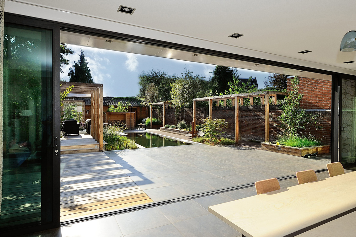 Kies je voor een vlakke dorpel, dan zit het kader van je schuifpui onderaan in de grond. Zo heb je geen overstap meer van binnen naar buiten. Ook voor minder mobiele mensen is dit veel makkelijker.