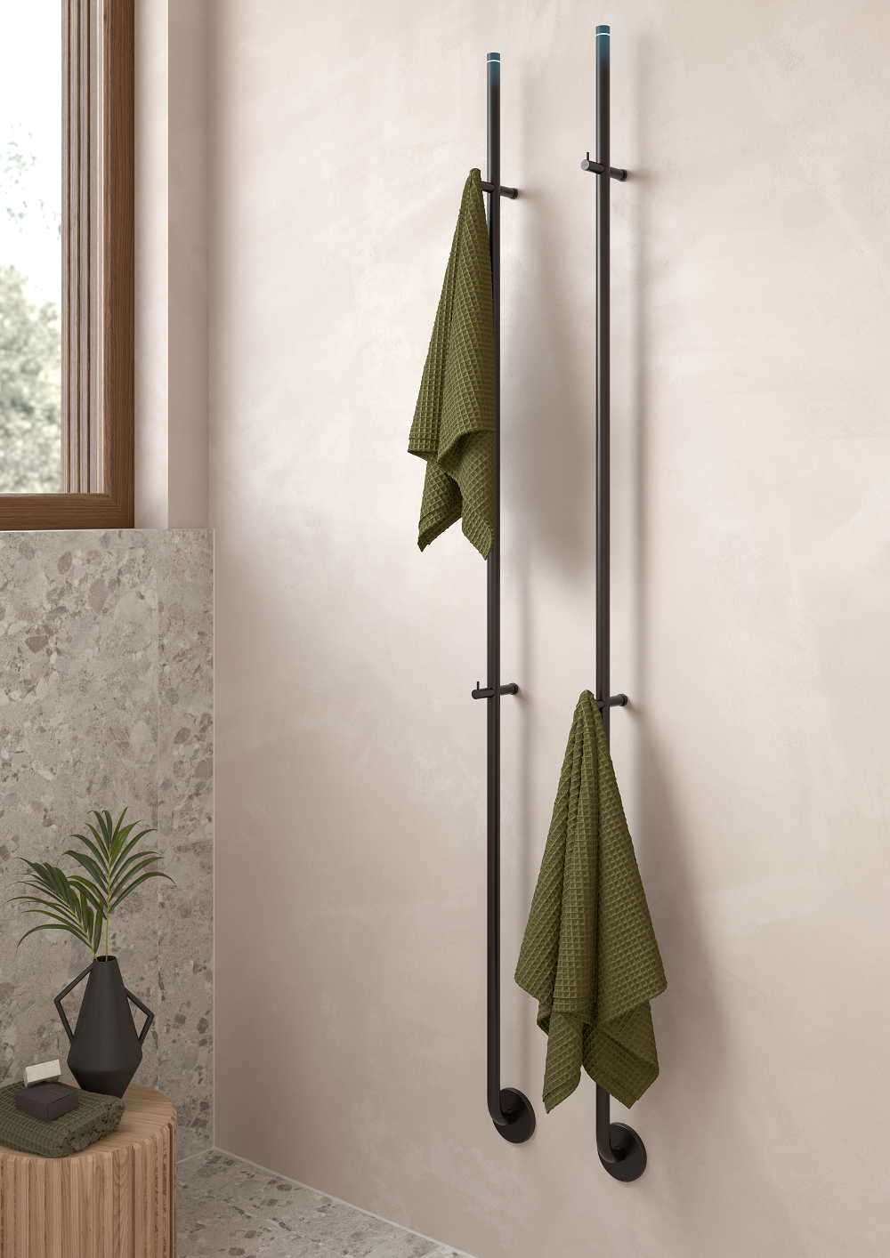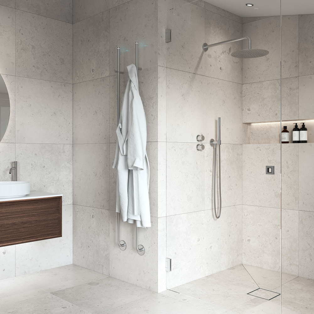 Met de energiezuinige, elektrische handdoekwarmers JAY en ARC is er altijd een warme handdoek of badjas voorhanden, zonder afhankelijk te zijn van de CV!