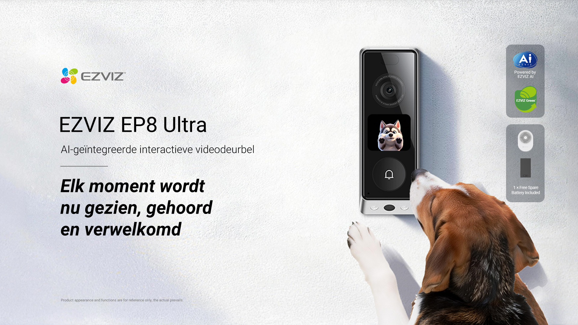 Naast detectie biedt de deurbel ook interactieve functies. De EP8 Ultra kan bekende gezichten met behulp van AI herkennen, zodat meldingen beter aansluiten op wie er voor de deur staat. Via het ingebouwde scherm kan de deurbel bezoekers begroeten met drie geanimeerde karakters, of – wanneer dat gewenst is – het gezicht van de bewoner tonen voor een persoonlijkere interactie. Via de EZVIZ-app kunnen gebruikers daarnaast automatische berichten instellen, bijvoorbeeld om een bezorger te laten weten waar een pakket kan worden achtergelaten.