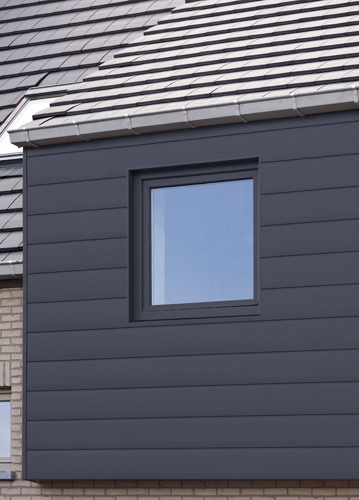 Met de nieuwe gevelbekleding Premium Vlak van Deceuninck (P 2730) maak je een goede keuze. De planken zijn beschikbaar in 4 donkere tinten – alux db 703, alux antraciet, antracietgrijs en grijze eik - , en spelen perfect in op de huidige trend van donkere gevelkleuren. Het is ook een veilige keuze voor de toekomst, want ‘het nieuwe zwart’ zal altijd donker zijn.