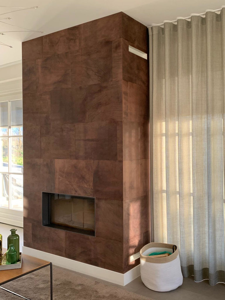 Bekleden van wanden van haarden, open haarden, gashaarden creëert een unieke eye-catcher in je living