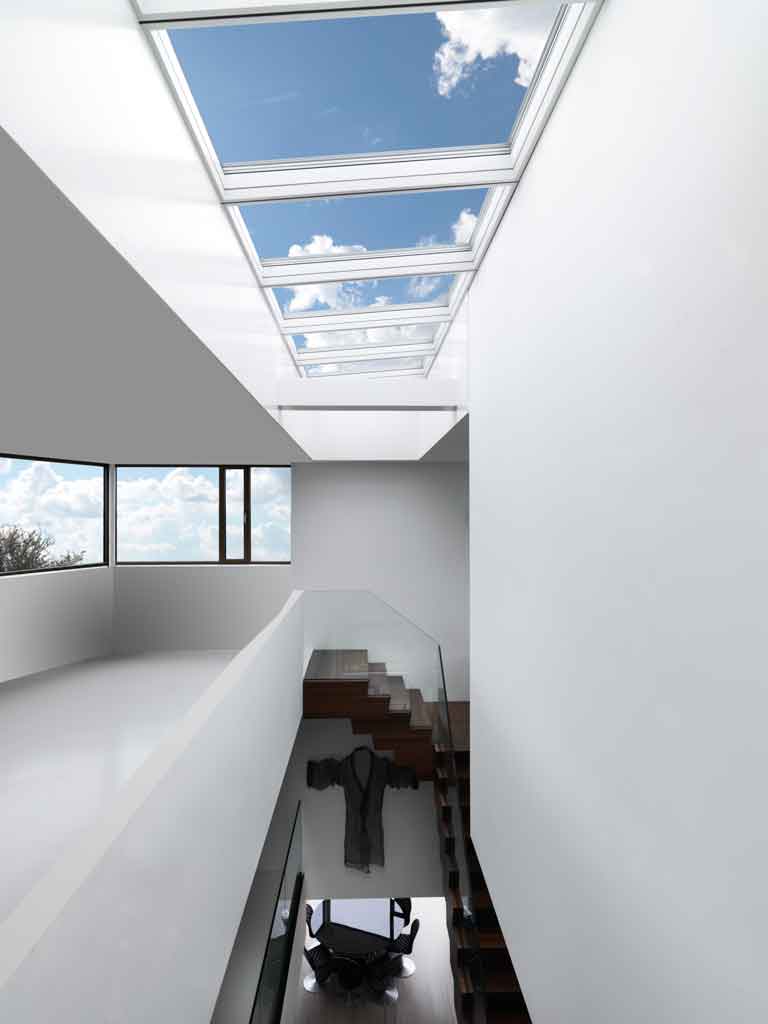 VELUX modulaire lichtstraten hebben hoge duurzaamheidskwalificaties met uitzonderlijke energieprestaties en een verwachte levensduur van 40 jaar of meer. De lichtstraatmodules kunnen worden gecombineerd in verschillende constructies, zoals sheddak-, lessenaars-, zadeldaken en atriums, die zo perfecte oplossingen creëren voor allerlei typen gebouwen van scholen, kantoren, winkelcentra tot woningen.
