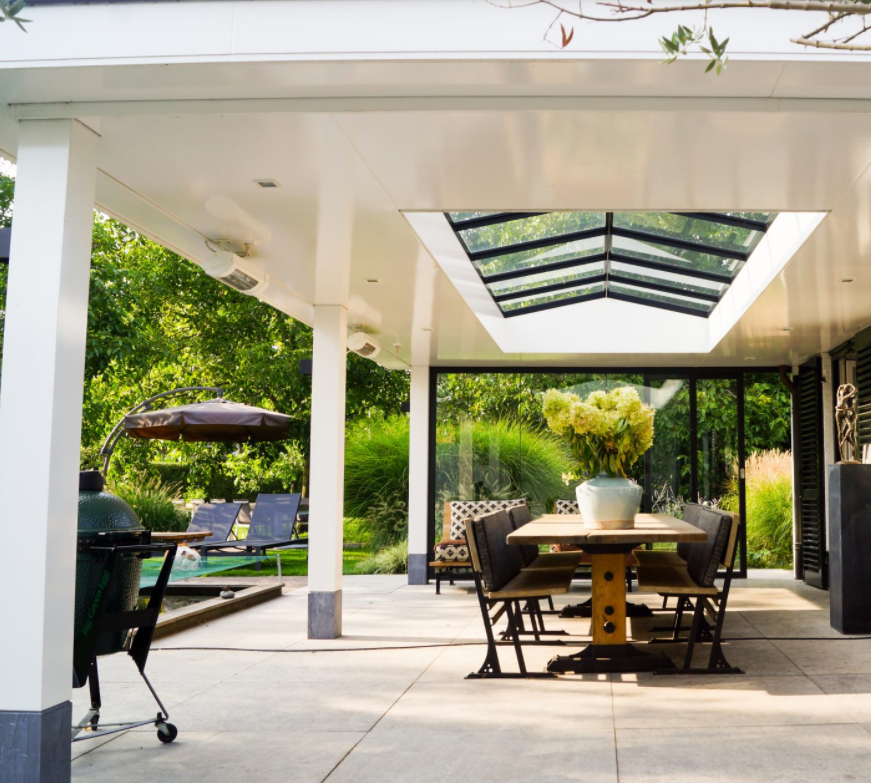 Wil je een verbinding tussen je platte dak en gevel maken? Kies dan voor een stalen lessenaarsdak tegen de gevel.
