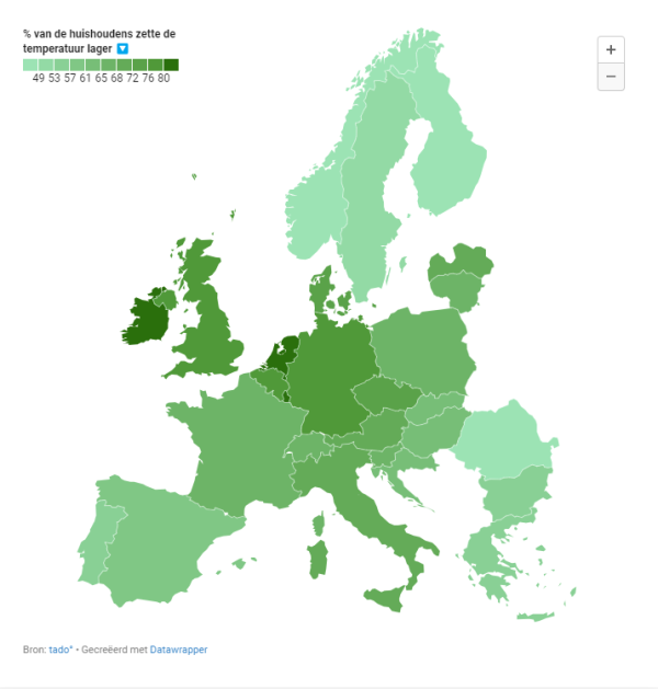 83,8% van de Nederlandse tado°-klanten heeft vorige winter zijn thermostaat lager gezet. Dit is het hoogste percentage van alle onderzochte Europese landen. In 2022-2023 was de binnentemperatuur in Nederland gemiddeld 18°C, ten opzichte van 19°C in 2021-2022 – een hele graad verschil. Huiseigenaren moeten nog steeds rekening houden met stijgende energiekosten na de pieken van vorig jaar. Het is verstandig om maatregelen te blijven nemen om de energierekening laag te houden, zonder in te leveren op comfort.