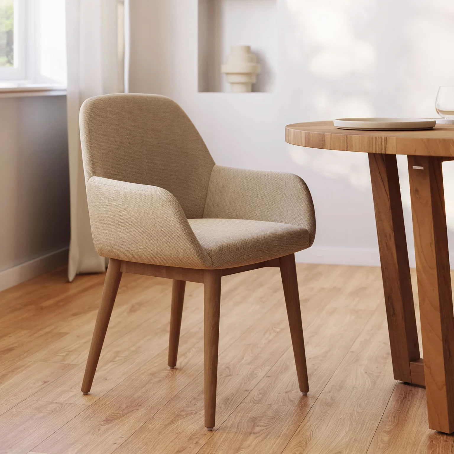 Klassieke kleuren zoals beige en wit zijn tijdloos en stralen elegantie uit. Ze creëren een rustige sfeer in een ruimte en samen zorgen ze voor de perfecte balans tussen warmte en helderheid. Beige is een neutrale kleur die je interieur rustig houdt en een natuurlijke look geeft. Een leuke manier om beige toe te voegen is via eetkamerstoelen. Beige eetkamerstoelen passen goed bij verschillende kleurenpaletten en interieurstijlen. Daarnaast zorgen deze stoelen voor een warme en uitnodigende sfeer in de eethoek. Ze kunnen ook gebruikt worden als neutrale basis waarmee je makkelijk kunt spelen door middel van kussens en andere accessoires.