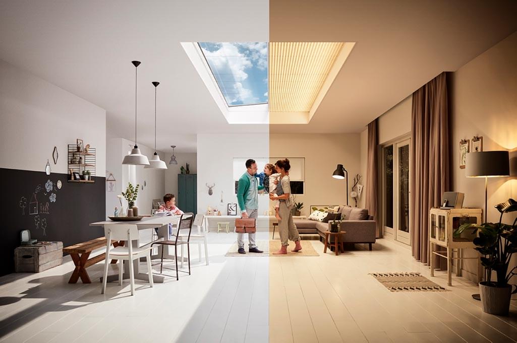 De Day & Night variant is de meest complete uitvoering van het Illumy platdakraam. Tot de standaard productkenmerken behoren geïntegreerde ledverlichting en een hoogwaardig plisségordijn van Verosol. Met de geïntegreerde ledverlichting kan op donkere dagen het licht van een zonnige dag worden gesimuleerd in de de stand ‘cool white’. ’s Avonds kan worden gekozen voor ‘warm white’ om een sfeervol verlichte woonomgeving te creëren. Illumy Day & Night is een sfeermaker die elke woonruimte of werkruimte aan huis voorziet van het juiste licht op het juiste moment.
