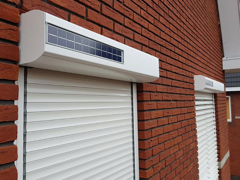 Het zonnepaneel aan de voorzijde van rolluikkast zorgt ervoor dat de ingebouwde accu wordt opgeladen. Hiervoor is niet direct zonlicht nodig maar wel voldoende omgevingslicht. Het rolluik werkt dan ook volledig autonoom. Hierdoor zijn er geen lelijke kabelgoten en schakelaars zichtbaar op de afgewerkte binnenmuur.