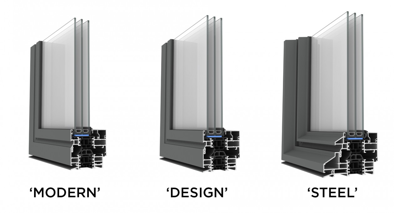 Binnen de ‘Max Light’ serie heeft men de keuze uit verschillende kaderprofielen en esthetische vleugels waardoor voor iedere woning, zowel renovatie als nieuwbouw, een passend profiel kan worden ontworpen. Naast de ‘Steel’ variant die uitstekend past voor de staal-renovatie bieden we een volledig vlakke ‘Modern’ versie evenals een verdikt profiel, genaamd ‘Design’, dat de indruk wekt van een vliesgevel.