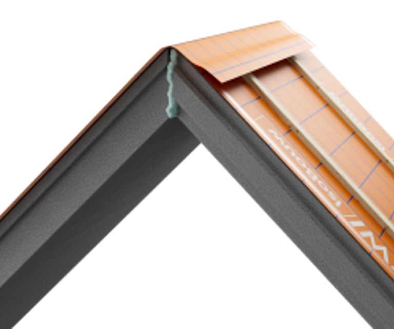 De tijdwinst van SlimFix RenoMulti zit niet alleen in het lage gewicht en de handzame verwerking van de dakelementen. De grootste versnelling ontstaat bij de waterafdichting. De elementen zijn voorzien van een waterkerende en dampopen (WKDO) folie met een overlap aan de lange zijde. Dankzij de tweezijdige plakstrips kan deze overlap direct en betrouwbaar worden afgedicht. Dit verkleint de kans op vertraging door weersomstandigheden en maakt het dak snel waterdicht.