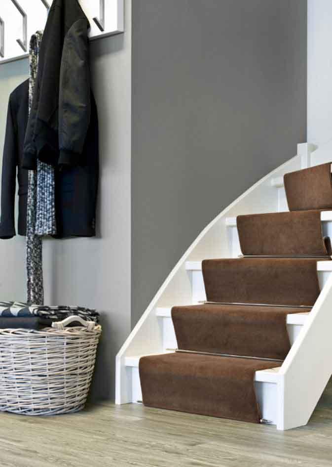 Een andere optie is om de gehele trap te bekleden of de oude bekleding te vervangen. Dit is uiteraard geschikt voor elke woonstijl. Kies voor een landelijke stijl door middel van een houtlook (denk aan PVC Flex of vinyl) of ga voor een sfeervolle trap met tapijt. Op dit moment is natuurtapijt, oftewel sisal, een populaire keuze. Dit natuurlijke materiaal geeft de hele gang of hal een warme uitstraling. Bovendien is sisal trapbekleding erg makkelijk te onderhouden en werkt het warmte-isolerend. Het is zeker de moeite waard om je hier eens in te verdiepen!