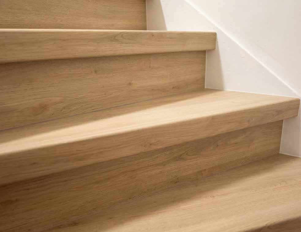 - De antislip toplaag, waardoor de treden in tegenstelling tot gladde treden super veilig zijn