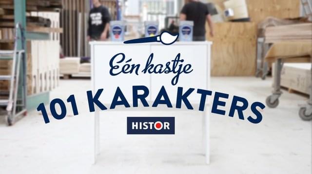 Creatieve consumenten konden de afgelopen weken voor de Histor campagne 'Eén kastje 101 karakters' hun ideeën voor een uniek karakter geven voor een ongelakt Piet Hein Eek kastje. Met 2.000 bijzondere en inspirerende inzendingen binnen een periode van twee weken is de actie 'Eén kastje 101 karakters' een groot succes te noemen. Op 9 november worden de meest bijzondere ideeën met de hulp van Histor verfexperts tot leven gebracht in de werkplaats van Piet Hein Eek.