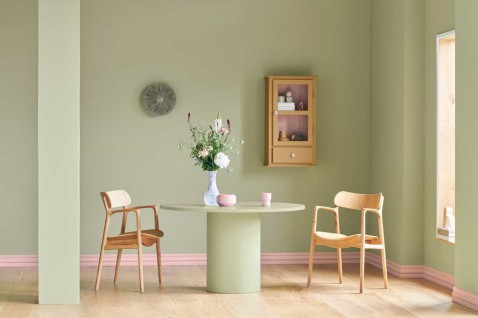 Saskia: “Dorade is een kleur met veel mogelijkheden. In combinatie met donkere, neutrale kleuren ervaar je Dorade als een warme violet-grijs. Naast wit en roze doet Dorade paars aan en in combinatie met poederkleuren ontstaat een stijlvol, sereen palet. Dorade is als kleur van het jaar terug te vinden in de kleurtrend Puur, maar kan ook met de drie andere kleurtrends worden gecombineerd.”