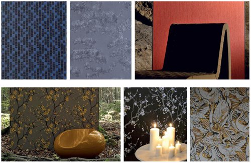 In het derde ontwerp, Woody, is een subtiel houtvlechtwerk te herkennen. Van veraf gezien trekt een speels zigzagpatroon de aandacht. Opgebouwd uit verschillende laagjes van patronen lijkt Woody op het papier geborduurd. De afwerking met metaalinkten geeft het ontwerp een extra glans. Het vierde patroon, Bonsai, geeft letterlijk diepgang aan de wand: tijdens het drukproces is gebruik gemaakt van embossing, een druktechniek waarbij reliëf wordt aangebracht. Bonsai is verkrijgbaar in de kleuren zilver, goud, parel en zwart.