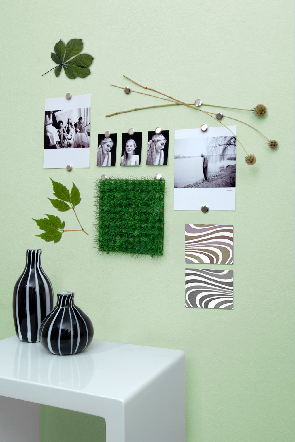 Ook deze verf geeft een erg leuk effect. Deze verf bevat kleine ijzerdeeltjes waardoor magneten op de muur blijven 'plakken'. Door schoolbordverf aan te brengen over magneetverf kun je er niet alleen leuke magneten kwijt, je kunt het ook gebruiken om op te schrijven. Zo sla je twee vliegen in één klap.