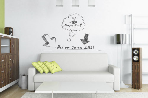 Of het nu op kantoor, op school of thuis in de kinderkamer, de keuken, de woonkamer of misschien zelfs het toilet is: de muur geldt vanaf nu als uitnodigende, prikkelende inspiratiebron! Iedereen mag er zijn zegje doen, waar beter dan hier ontstaan de leukste conversaties?