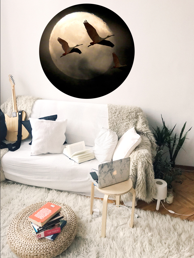 Verkrijgbaar op diverse materialen: behang, zelfklevend behang, Forex, Dibond en Carton Board. Plaatmateriaal is ideaal voor grove wanden, of als je de cirkel nog eens wil kunnen verplaatsen. Bijgeleverd is de handige ophangplaat. Kijk op www.funqy.nl voor nog veel meer mooie afbeeldingen. Zit je favoriete afbeelding er niet bij? Laat het weten. (ook eigen foto's mogelijk)