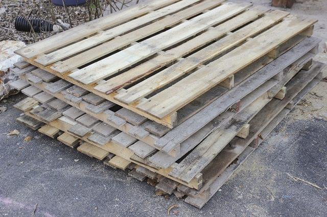 Oude pallets goed gedroogd (voor onze wand 2,5 m lang gebruikte wij 8 pallets)