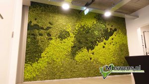 Een moswand met een mix van verschillende mossen. Moswens maakt moswanden in alle soorten en maten. Wij kunnen verschillende mossen mixen tot een bijzonder mos kunstwerk? Neem contact met ons op om uw wensen te bespreken.